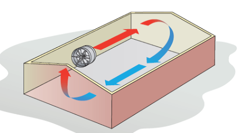 Los ventiladores recirculadores están desarrollados para separar el calor estratificado, la humedad y el aire estancado.